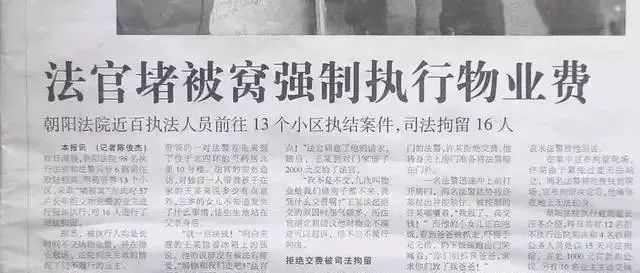 2005年10月30日,北京朝陽法院98名執(zhí)行法官和法警兵分6路前往歐陸經(jīng)典、芍藥居等13個(gè)小區(qū),采取“堵被窩”方式對57戶長年拒交物業(yè)費(fèi)的業(yè)主進(jìn)行強(qiáng)制執(zhí)行,對16人進(jìn)行了司法拘留。