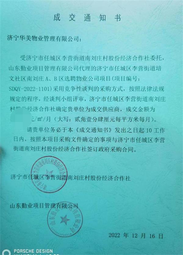 恭喜成功中標(biāo)李營街道培文社區(qū)南劉莊A、B區(qū)物業(yè)服務(wù)項目